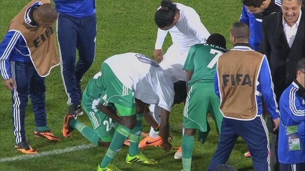 The home club players seized the opportunity to grab a piece of history at the end of the match, snatching off equipment from their much revered opponent.